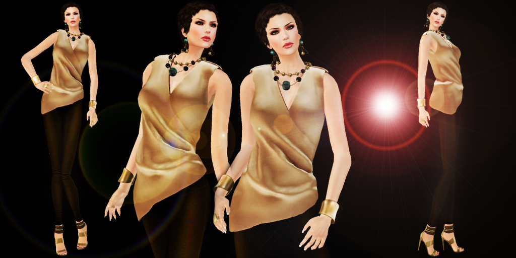 Blouse: ISON – draped sleeveless top (gold)