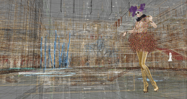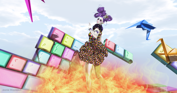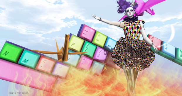 A inspiração para o desafio está na busca da história de Pierrot, Arlequim e Colombina, o famoso triângulo amoroso das comédias de rua, adaptado da Itália para a França no século XV, assim como o Tarô (Tarot de Marselha), representado pela carta O Louco, que se assemelha a uma mistura de Pierrot e Arlequim. A ideia era fundir elementos do vestido de Colombina, os losangos das roupas de Arlequim e a maquiagem de Pierrot, com babados, drapeados, luvas, cetim e encaixar a modernidade do desafio que acontece em 2068. Para este salto do século XV para o século XXI, a inspiração veio de filmes especialmente no estilo de vida da moda dos cidadãos dos Jogos Vorazes representados no personagem de Effie Trinket, sempre muito bem vestida em alta costura e as luzes de Katniss. Nas passarelas de hoje, esse estilo pode ser representado na coleção W / F 2011 da Dior, sem Galliano.