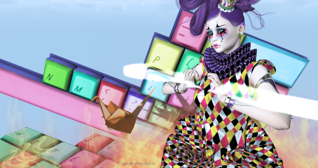 Antes de começar o desafio, fui procurar ler mais sobre Pierrot e sua relação com Colombina e o Arlequim, e durante a pesquisa me veio na mente uma foto muita antiga (2010 – Outfit da Bare Rose) que fiz, baseada nas cartas de Tarot de Marselha, mas para o desafio eu via em minha mente a imagem da carta “O Louco”. E então me senti levada para a Idade Média… vendo as representações teatrais nas praças das cidades consumidas na escuridão intelectual da época… e aquela figura triste e abandonada do Pierrot…